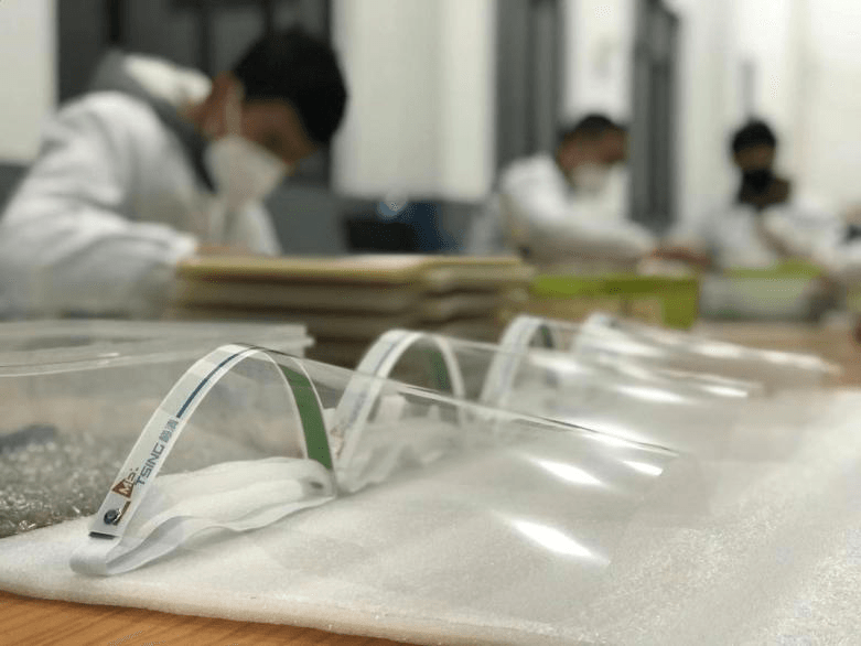 梅清数码联合母公司创业慧康,免费援助防护面罩 —— 防护面罩由医用级胶片改造而成