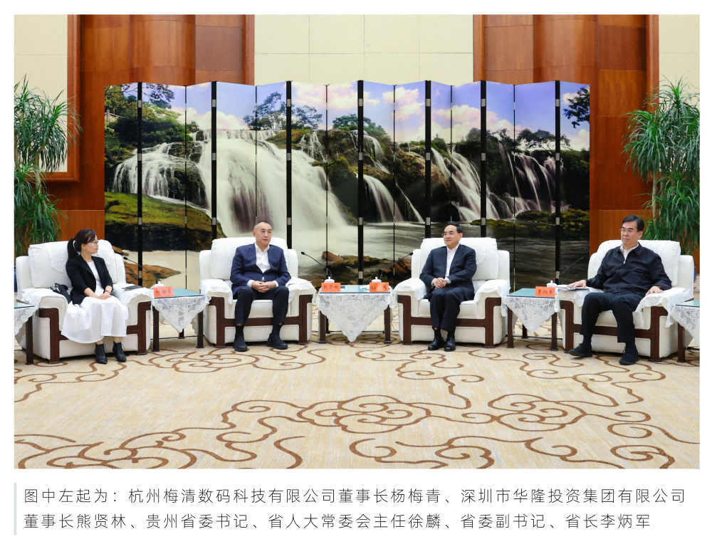 10月20日,受相关部门邀请,梅清科技与全国30余家优强企业组团赴黔考察调研,并受到贵州省委书记、省人大常委会主任徐麟,省委副书记、省长李炳军,省政协主席赵永清亲切会见。省委常委、省委统战部部长郭强主持召开座谈会,省委常委、省委秘书长陈少波,副省长蔡朝林,省政协副主席、省工商联主席李汉宇共同参会。